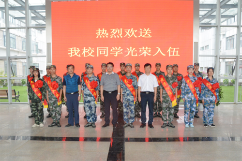 “携笔从戎铸军魂 立志挥戈献国防”。9月9日下午,我校举行2019年大学生入伍士兵欢送仪式。学校党委书记李国忠、校长解庆林、副校长陈学军,党办校办、武装部、宣传部、学工部、校团委以及相关学院负责人为我校即将携笔从戎的入伍学生送行。
