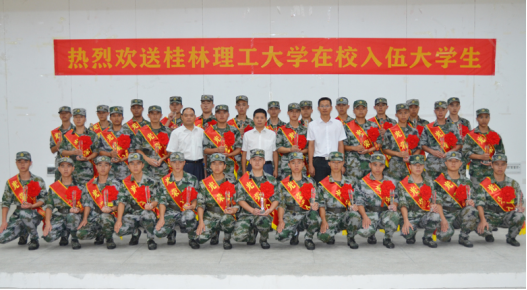 9月9日下午,我校在桂林市示范性教育实践基地举行2020年大学生应征入伍欢送仪式,学校副校长邓国彬、太阳集团tyc138负责人共同为即将携笔从戎的入伍学生送行。