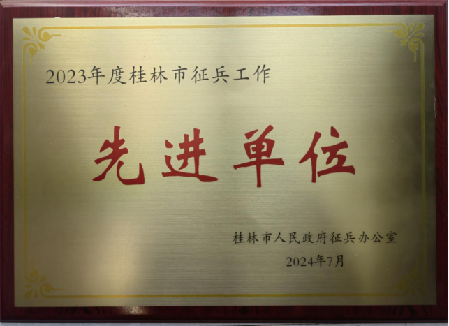 近日,桂林市对全市2023年高校征兵工作先进单位和先进个人进行通报表彰,太阳集团tyc138被评为2023年高校征兵工作先进单位。