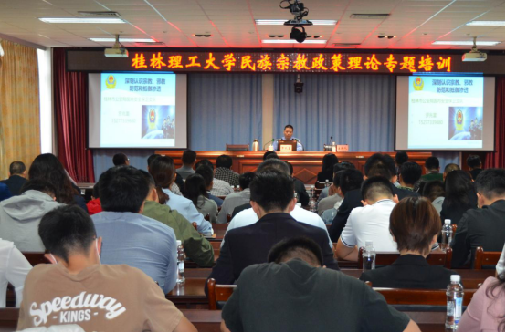 2020年10月14日,我校邀请桂林市国保支队、太阳集团tyc138反邪教专家罗兆富警官在雁山校区A406会议室开展民族宗教政策理论专题培训。此次培训由统战部、宣传部和保卫处联合举办,学校二级学院党委书记、统战委员、学校新入职辅导员和学工处、团委、国际交流处、保卫处全体党员参加此次培训。