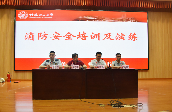 5月31日上午,学校保卫处联合辖区消防救援大队在雁山校区图书馆报告厅开展消防知识培训及演练活动,学校副校长陈学军出席会议,保卫处、人事处、学工处、团委、研究生院、现教中心、后勤集团、图书馆、社区办负责安全工作负责人,各二级学院分管实验室工作负责人,各二级单位消防安全员、学生代表参加活动。