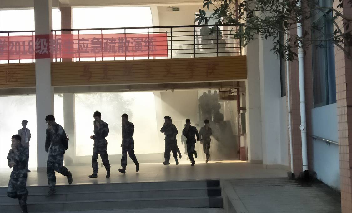 为了提高2018级全体新生的消防意识,增强其处置突发火灾、疏散和自救能力。2018年10月27日上午,我处在雁山校区二号篮球场等六个区域分别开展灭火演练活动、疏散演练活动。武装部部长、保卫处处长崔光仁担任此次演练总指挥,秦勤忠副处长、鞠敏敏副处长、黄海副处长分别带领工作人员指导和组织了5400余名新生参加演练活动。