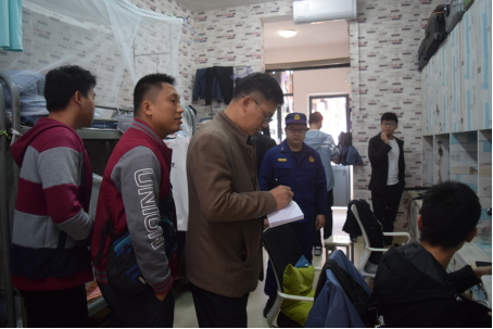 首先黎超业副处长从提高主人翁意识、学点安全技能、做好宣传教育等三个方面进行活动总动员和总部署;其次雁山消防官兵进入学生宿舍指导学生隐患排查和日常安全注意事项,检查结束后集中观看了消防安全警示视频等宣传材料、参观消防救援车辆;最后与会师生代表分区域分批次体验模拟灭火、模拟疏散逃生、油盆灭火、消防栓灭火。