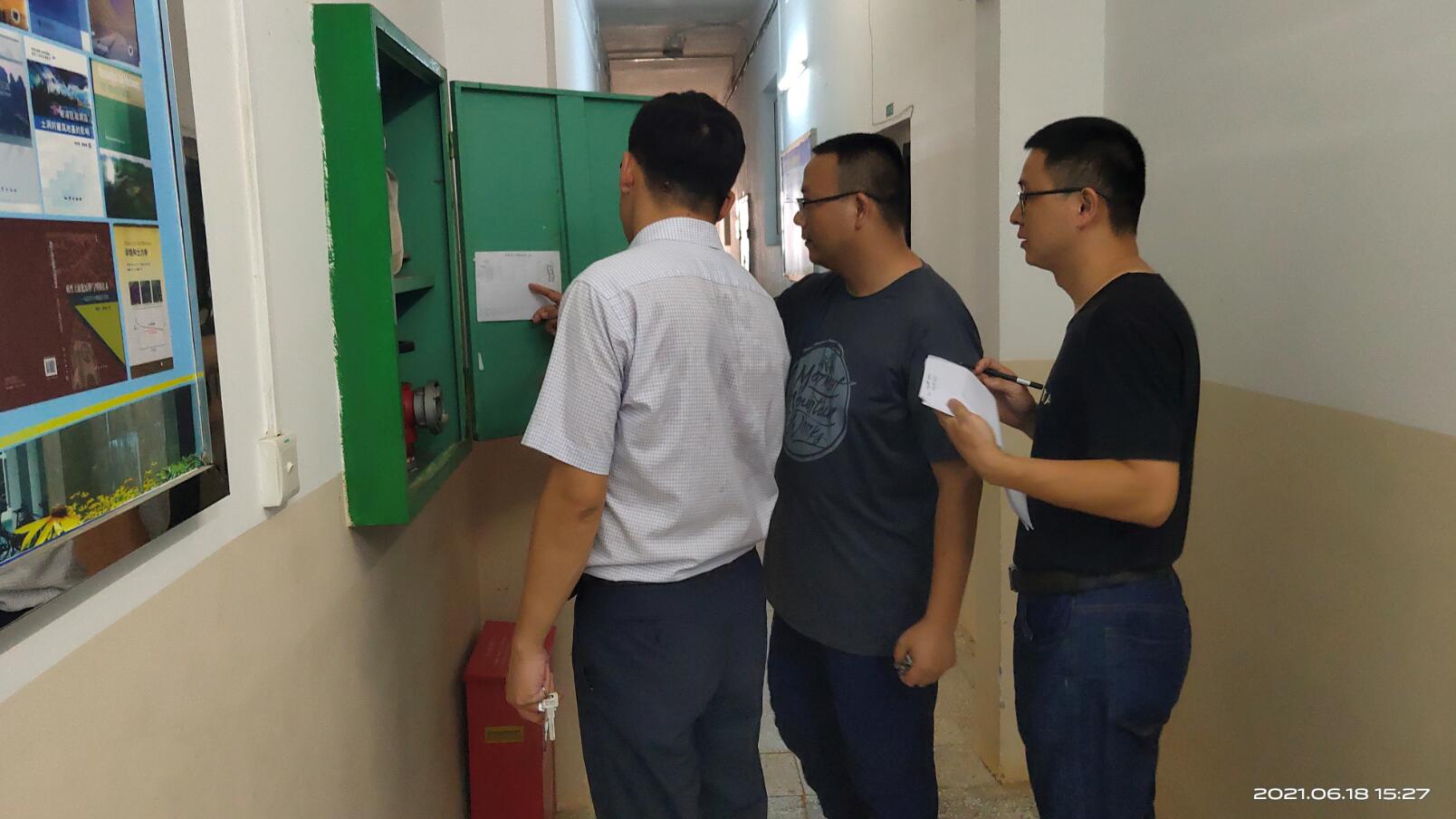 为全力确保全国第二十个安全生产月期间我校的消防安全形势持续稳定,6月18日,副处长黎超业同志带队深入土建学院和商学院开展消防安全检查工作,消防科王治国、彭智勇等人员陪同检查。