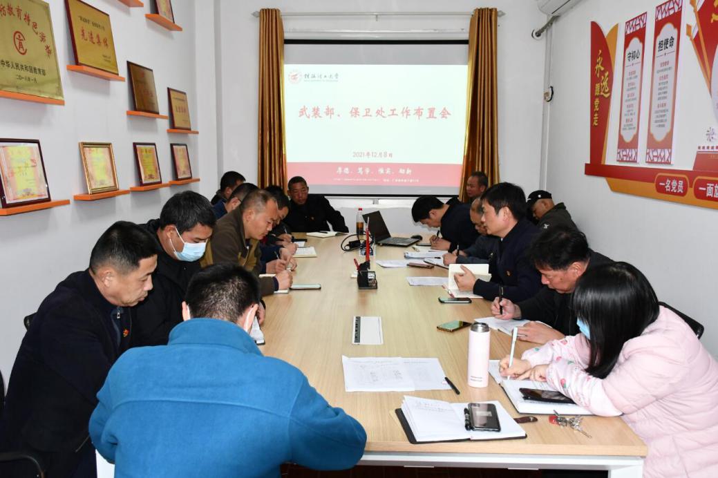 为有效防范和积极应对新冠肺炎疫情,进一步研究部署武装保卫工作近期的重点任务,12月8日,武装保卫处在屏风校区会议室召开工作布置会,武装保卫处处长张瑞主持会议,我处全体人员参加会议。