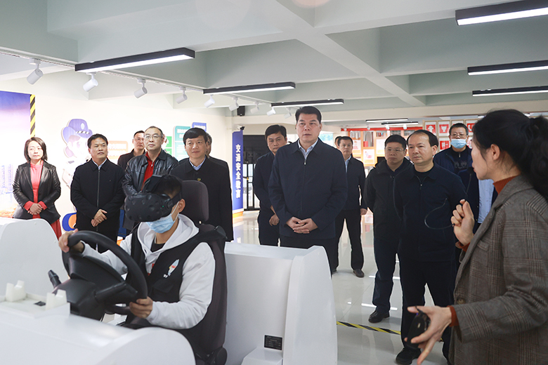 解庆林对调研组的到来表示欢迎,并介绍了我校基本情况和大学生安全教育基地建设情况。他表示,学校高度重视大学生的安全教育,大学生安全教育基地自建成以来,始终以安全教育模块化、小班化、体验式、可考核为建设理念,并将安全教育纳入到新生入学启航教育中,成为每个桂工学子的第一堂必修课。