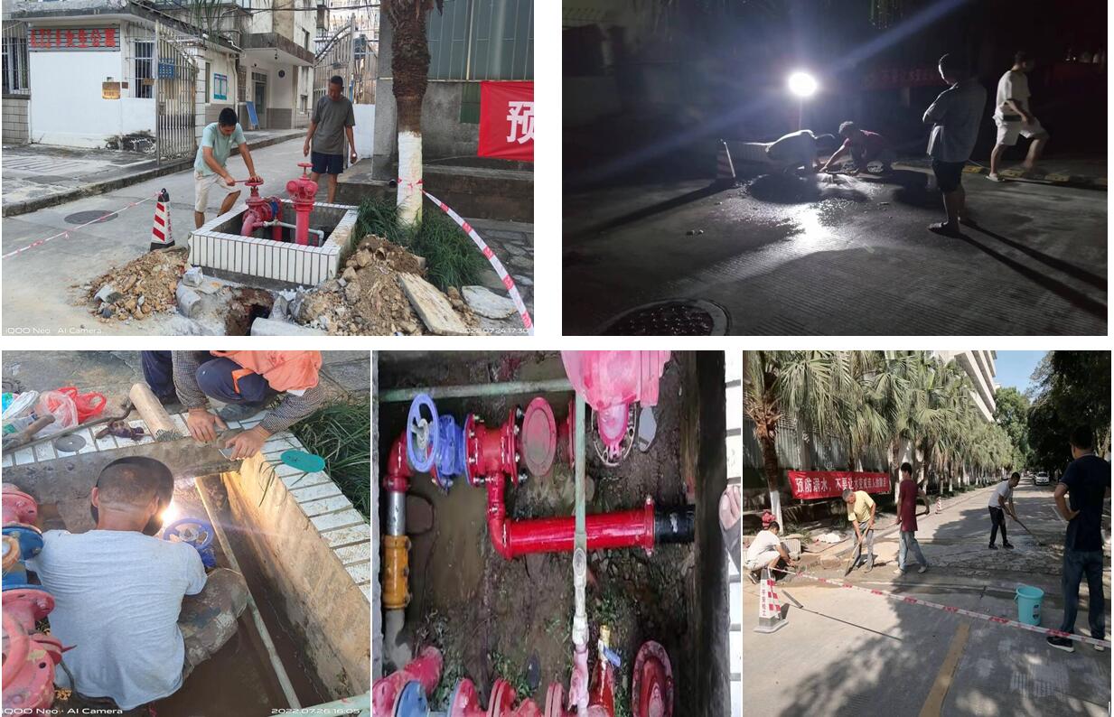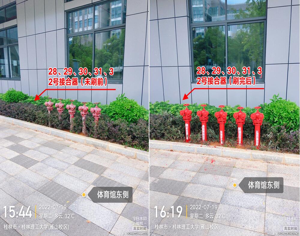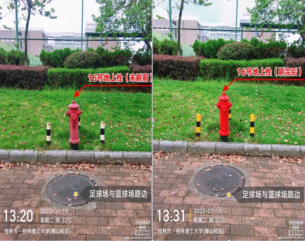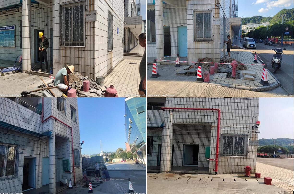 苦干实干,扎实推进。暑期高温给项目施工带来了较大困难。为确保项目质量和进度,科室加强全过程监管,号召大家发扬“特别能吃苦、特别能战斗、特别能奉献”的精神,克服困难抢工期、抓质量、保安全。施工阶段,陆大木、李路喜、彭智勇等同志不论工作日还是周末,连续十五天坚持到工地检查项目进度,为降低停水对居民的影响,多次在0点以后施工,虽然在放假期间,但是“五加二”、“白加黑”已是暑期消防工作的常态。此次施工共完成5套室内消防栓加装、1套室外消防栓改造、加装消防压力表106套、对室外消防栓除锈上漆104套、对教学楼和学生宿舍等20个楼栋进行消防管道除锈上漆,初步改变了我校消防设施设计不足及老化的状况。