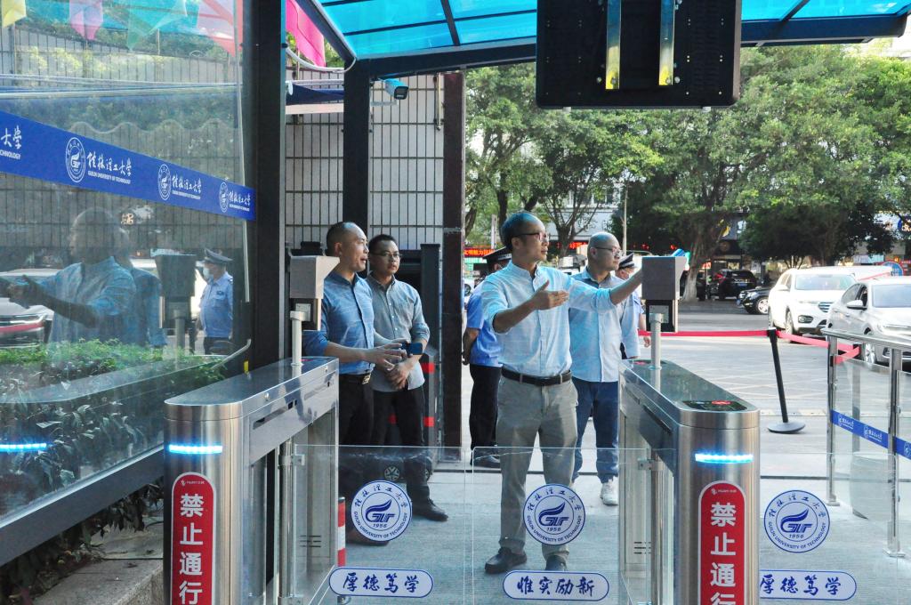 双方首先就校园安全管理工作展开交流。鞠敏敏副处长对保卫处的工作进行简单介绍,重点介绍在疫情防控期间发挥重大作用的人脸识别门禁道闸系统,并就系统的使用和功能做详细交流。双方还在消防系统建设和校园综合治理等重难点环节进行了深入交流。会后,梧州学院保卫处罗震副处长一行到学校大门对人脸识别门禁道闸系统进行现场体验。