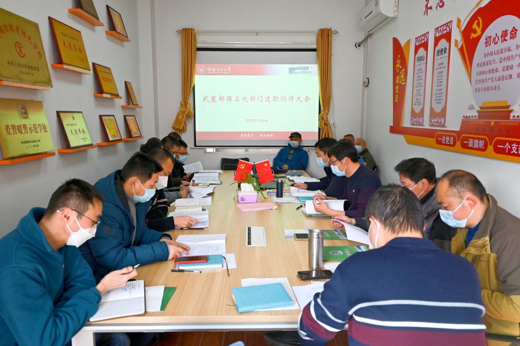 为切实做好教职工年度考核和学校寒假期间安全稳定工作,1月6日下午,2022年度部门述职测评大会暨假期工作布置会在屏风校区保卫办公楼103备勤室召开,会议由武装部(保卫处)部(处)长张瑞主持,部门全体人员参加会议。