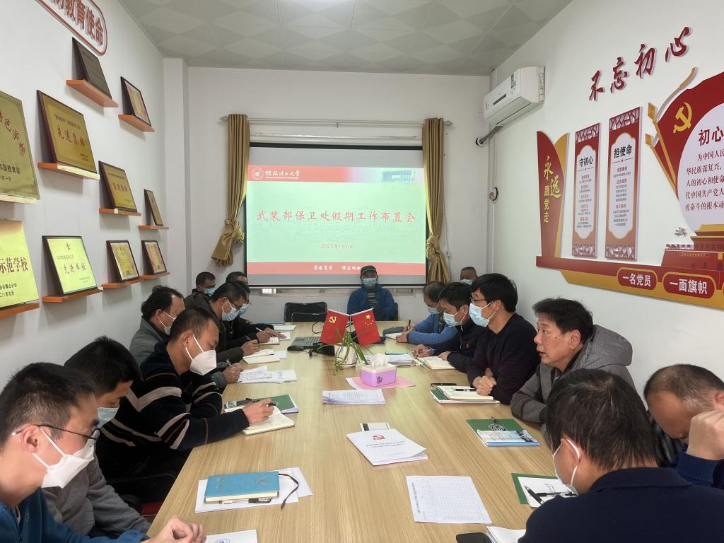 假期工作布置会上,鞠敏敏、黄海、黎超业三位部门领导班子成员分别就寒假期间校园的疫情防控、校园进出管理、征兵体检、屏风山防火等方面具体工作进行了布置。最后,张瑞部(处)长强调,一是要增强团队意识和安全责任意识,常态化做好疫情防控和校园治理,切实把服务师生、保障校园安全放首位;二是要善于主动学习、主动担当、真抓实干,不断提高服务师生业务水平,全力提升学校安全系数;三是要聚势谋远,提前做好规划,利用假期做好部门相关建设和工作谋划。