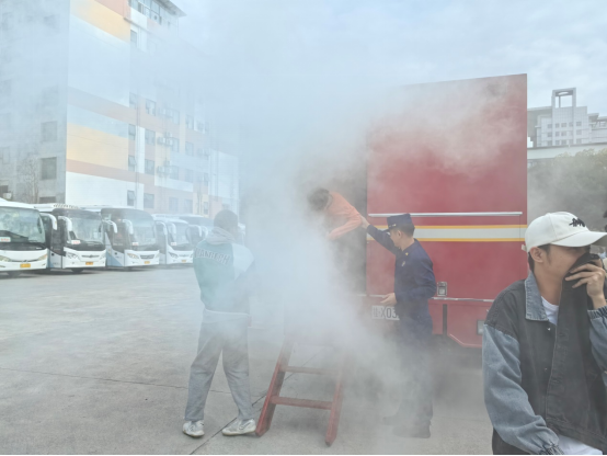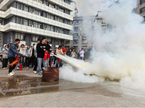 首先,通过观看消防宣传车警示视频进行了安全知识培训,通过模拟烟气蔓延规律实验装置展示了火灾的危害,讲解了安全用电、规范充电、火场逃生等消防常识;随后进行了紧急疏散演练,同学们弯腰扶墙并用衣袖捂住口鼻,从模拟烟道迅速撤离;最后进行了灭火毯、干粉灭火器、消防水带等初期灭火器材的演练,同学们按照操作要领分组练习,掌握了初期消防器材的使用方法,达到了预期的培训目标。