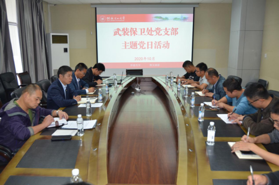 10月14日下午,武装保卫处党支部在雁山校区行知楼B301会议室开展党课学习活动,学校副校长邓国彬同志为支部党员讲授《从中美新冠疫情防控看我国的制度自信》专题党课。党课由支部书记冯广辉同志主持,支部全体党员参加了学习。
