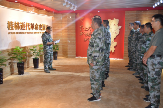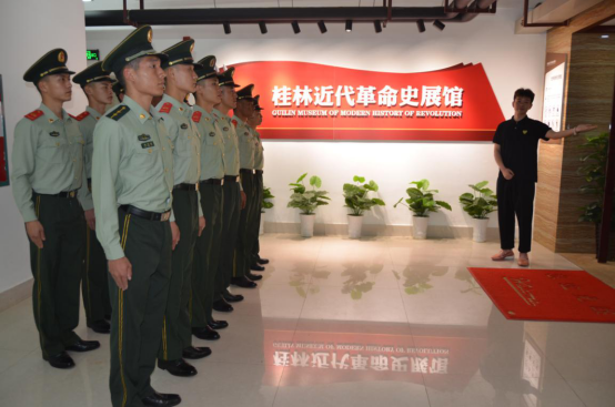 讲解员为官兵讲述近代风云、湘江战役、抗日烽火、解放重生、人杰地灵、名人荟萃、领导关怀七大板块,展馆展示了桂林从太平天国到辛亥革命的风云历程、红军长征突破湘江的艰苦历程、抗日文化兴起与发展的历程。