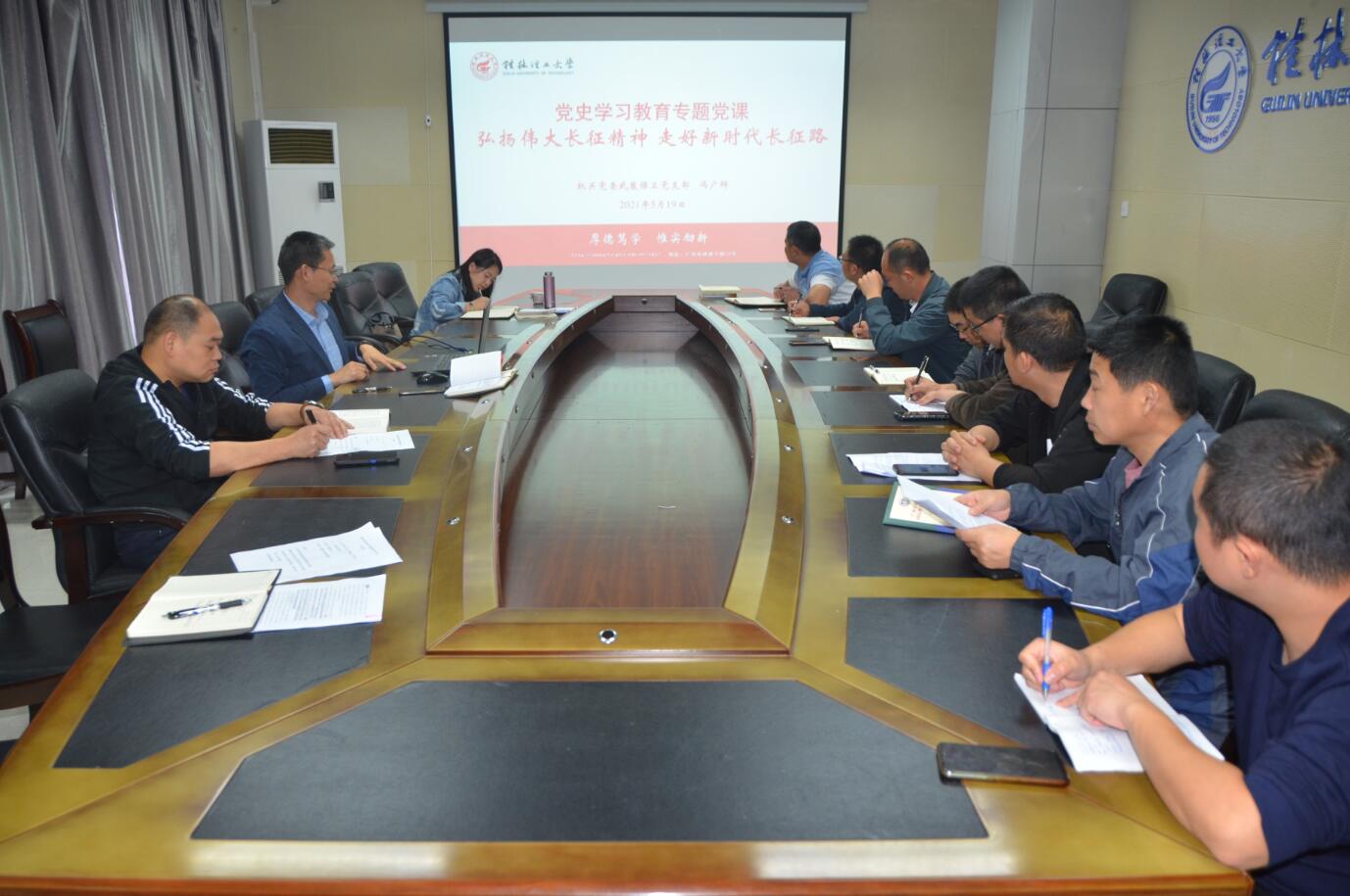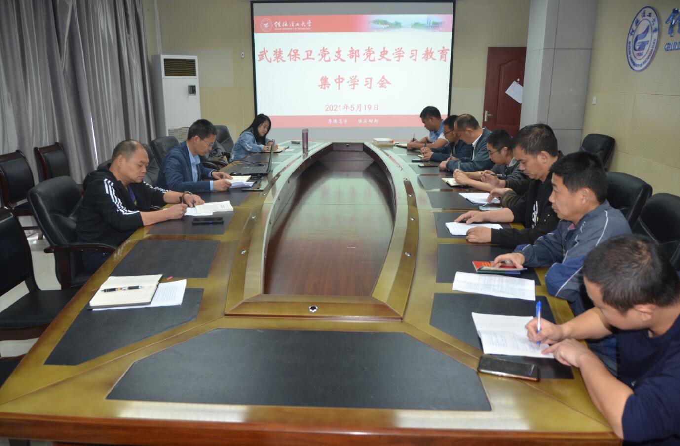 为深入推进党史学习教育,5月19日上午,武装保卫党支部在雁山校区行知楼B301会议室召开党史学习教育集中学习会,会议由支部副书记黄海同志主持,全体党员参加会议,1名入党积极分子列席会议。
