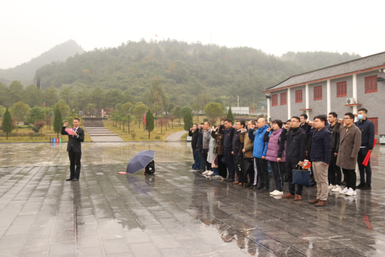 全体党员干部首先来到湘江战役新圩阻击战酒海井红军纪念园,瞻仰酒海井红军烈士纪念碑,向英勇的革命先烈致以最崇高的敬意。