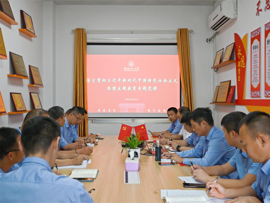 为进一步推动广大党员、干部全面深入开展学习贯彻习近平新时代中国特色社会主义思想主题教育,6月16日下午,武装部保卫处党支部在屏风校区后勤保卫楼会议室举行学习贯彻习近平新时代中国特色社会主义思想主题教育专题党课。学校党委常委、副校长邓国彬以“强化安全意识,筑牢安全底线”为题讲授专题党课。活动由武装部保卫处党支部书记张瑞主持。支部全体党员参加。